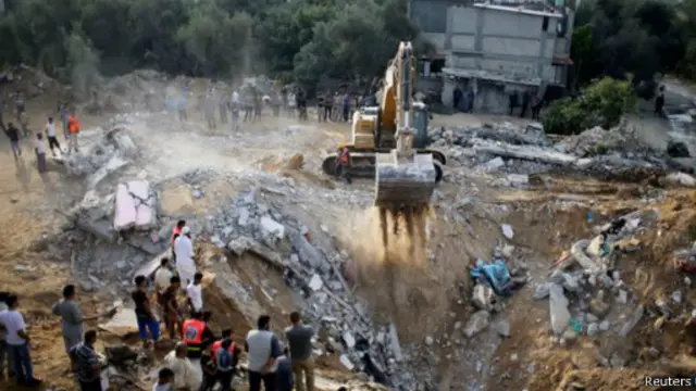 وأعلنت مصادر طبية فلسطينية مقتل ثلاثة فلسطينيين من عائلة بريعم واصابة عدد اخر في قصف تجمع للمواطنين في دير البلح وسط قطاع غزة.