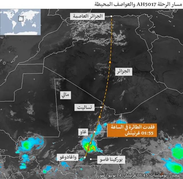 وكانت الطائرة متوجهة من واغادوغو، عاصمة بوركينا فاسو، إلى الجزائر العاصمة.