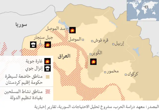 ودعما لقوات البيشمركة، شنت مقاتلات وطائرات بلا طيار 25 هجوما جويا خلال يومين، استهدفت خلالها 30 مركبة ونقطة تفتيش تابعة لتنظيم "الدولة الإسلامية، حسبما أعلنت وزارة الدفاع (بنتاغون).
