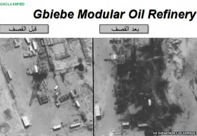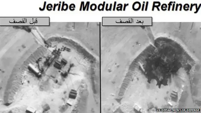 ويقول مراسلنا في سوريا إن منشآت التصفية المستهدفة ليست منشآت كبيرة وانما مواقع صغيرة لتصفية كميات محدودة من النفط، مضيفا ان الطيران الامريكي استهدف منشآت الجبسة ومركدي في محافظة الحسكة وحقل الحسيان في البو كمال وحقل العمر بدير الزور.
