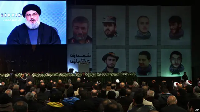 وكان نصرالله يتحدث من خلال اتصال مصور في حفل اقيم لاحياء ذكرى قتلى حزب الله الذين سقطوا في الجولان في الثامن عشر من الشهر الحالي.