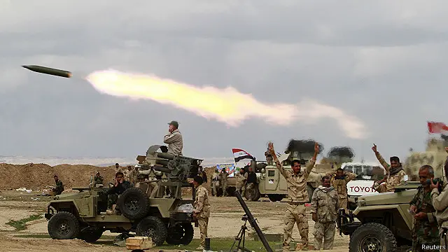 وتقدم طائرات ومروحيات سلاح الجو العراقية إسنادا للعملية البرية من الجو، لكن مقاتلات التحالف الذي تقوده الولايات المتحدة لا يشارك.