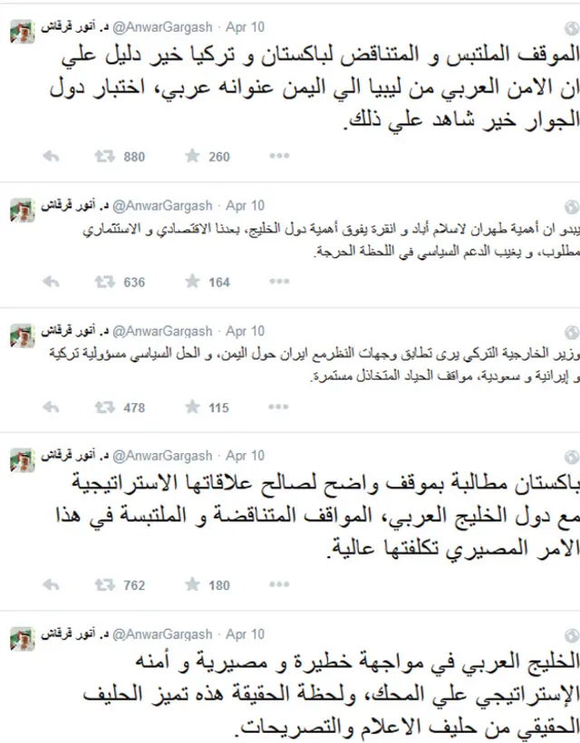 وأضاف قرقاش أن الموقف الباكستاني سيكون له ثمن باهض.