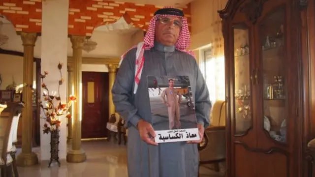 وقال الكساسبة لبي بي سي إنه مازال هناك الكثير من الأسئلة غير المجاب عليها بشأن أسر ابنه البالغ من العمر 26 عاما على يد تنظيم "الدولة الإسلامية"، والذي يبدو أن طائرته المقاتلة إف 16 أصيبت في الجو فوق أراض خاضعة لسيطرة التنظيم.