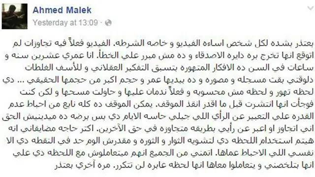 وتحدث الشاب أحمد مالك إلى أحد البرامج الحوارية على قناة محلية مكررا اعتذارا نشره سابقا على صفحته على فيسبوك.