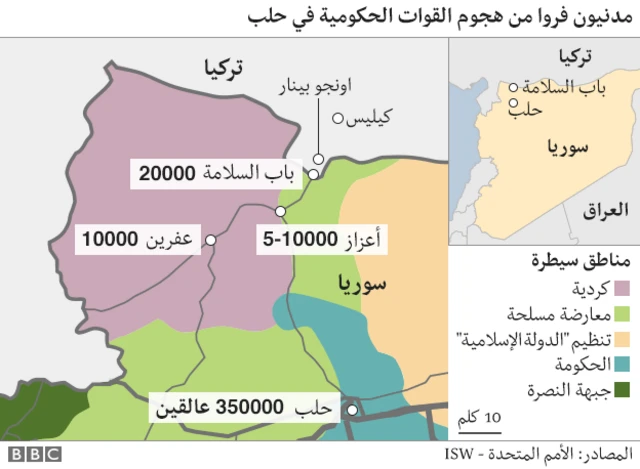 وقال المرصد السوري لحقوق الإنسان المعارض إن هذا التقدم يجعل القوات الحكومية السورية والموالين لها أقرب بمسافة 5 كيلومترات من بلدة تل رفعت الاستراتيجية، الواقعة بريف حلب الشمالي.