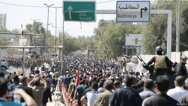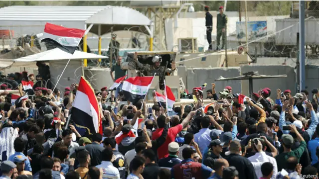 وكانت حشود المعتصمين الذين وفدوا الى ساحة التحرير وسط بغداد سيرا على الأقدام من مختلف مناطق المدينة كسرت الحاجز الذي إقامته القوات الامنية على جسر الجمهورية المؤدي الى المنطقة الخضراء والعبور والتظاهر عند المدخل الرئيسي للخضراء، فيما وقف رجال الأمن عاجزين امام تلك الحشود .