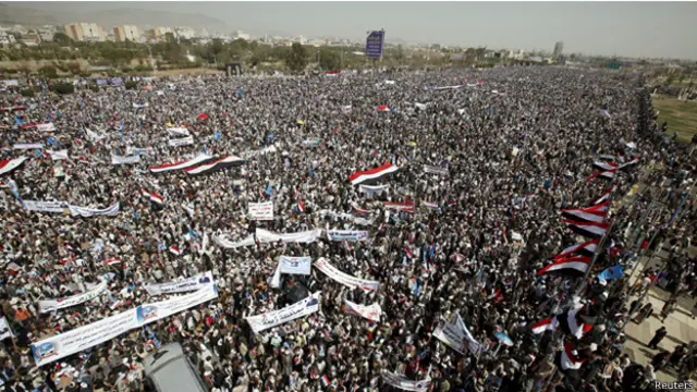والقى الرئيس السابق صالح كلمة في المتظاهرين كرر فيها دعوته لاجراء مفاوضات مباشرة مع السعودية.