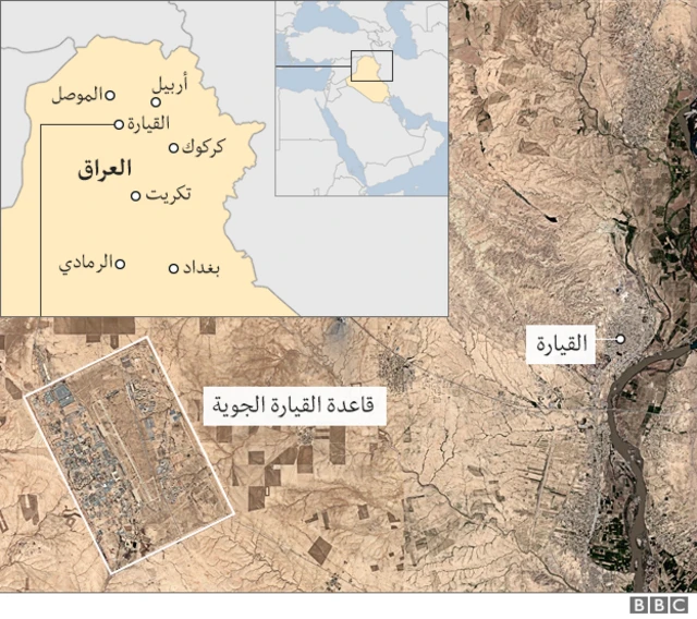 وتقع القاعدة على بعد 65 كيلومترا جنوب الموصل، آخر معقل للتنظيم في الأراضي العراقية.