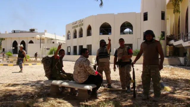 ولا يزال أفراد هذه الميليشيات يواجهون القناصة المنتشرين في الأحياء السكنية المحيطة بالمجمع.