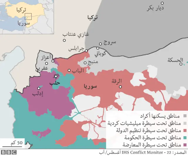 وكان وزير الخارجية التركي مولود جاووش أوغلو تعهد الثلاثاء بأن بلاده "ستقدم كل اشكال الدعم" من اجل طرد مسلحي "تنظيم الدولة الاسلامية" من بلدة جرابلس السورية الحدودية.