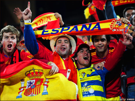 25/6: مشجعون اسبان يعبرون عن فرحتهم بفوز المنتخب الاسباني على نظيره التشيلي في بريتوريا