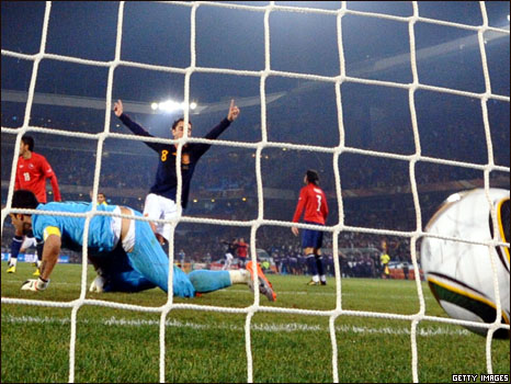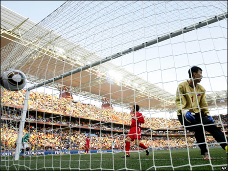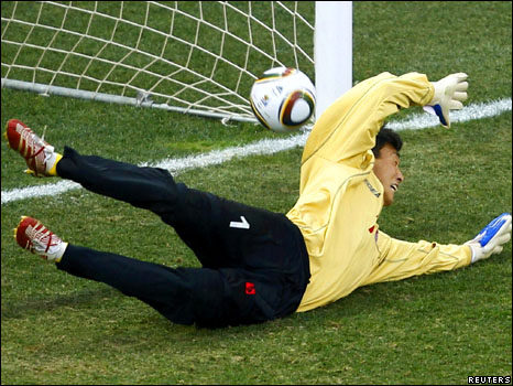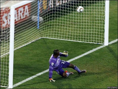 26/6: حارس مرمى غانا ريتشارد كينغسون ينظر الى الكرة وهي تدخل مرماه من ضربة الجزاء التي نفذها الامريكي لاندون دونوفان