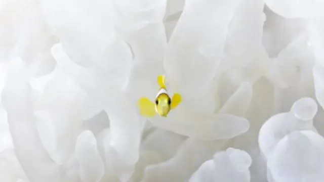 فازت لقطة للمصور تين سينكلير تايلور لسمكة بهلوان صغيرة تعيش في بيئة تنعدم فيها الألوان ضمن فئة النظام البيئي والعلوم البيئة. ورصدت هذه السمكة أثناء رحلة بحثية لتوثيق حجم التلف في الشعب المرجانية البيضاء في جزيرة فرسان على سواحل البحر الأحمر في السعودية.