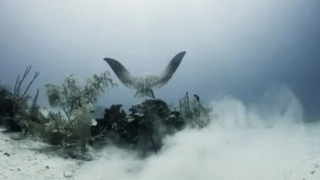 صورة التقطها نيك روبرتسون براون لسمك الشفانين العُقابي وهو يسبح فوق شعب مرجانية بفريسته قبالة سواحل جزر غراند كايمان، وقد فازت الصورة في فئة بيولوجيا التطور.