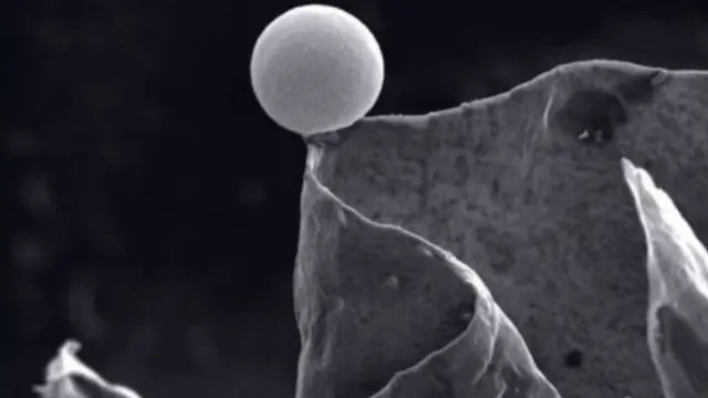 لقطة للمصورة ماريا كارباجو سانشيز مكبرة 5000 مرة تظهر سطح حبة كربون نشطة، والصورة فائزة في فئة التصوير عن قرب "ميكرو".