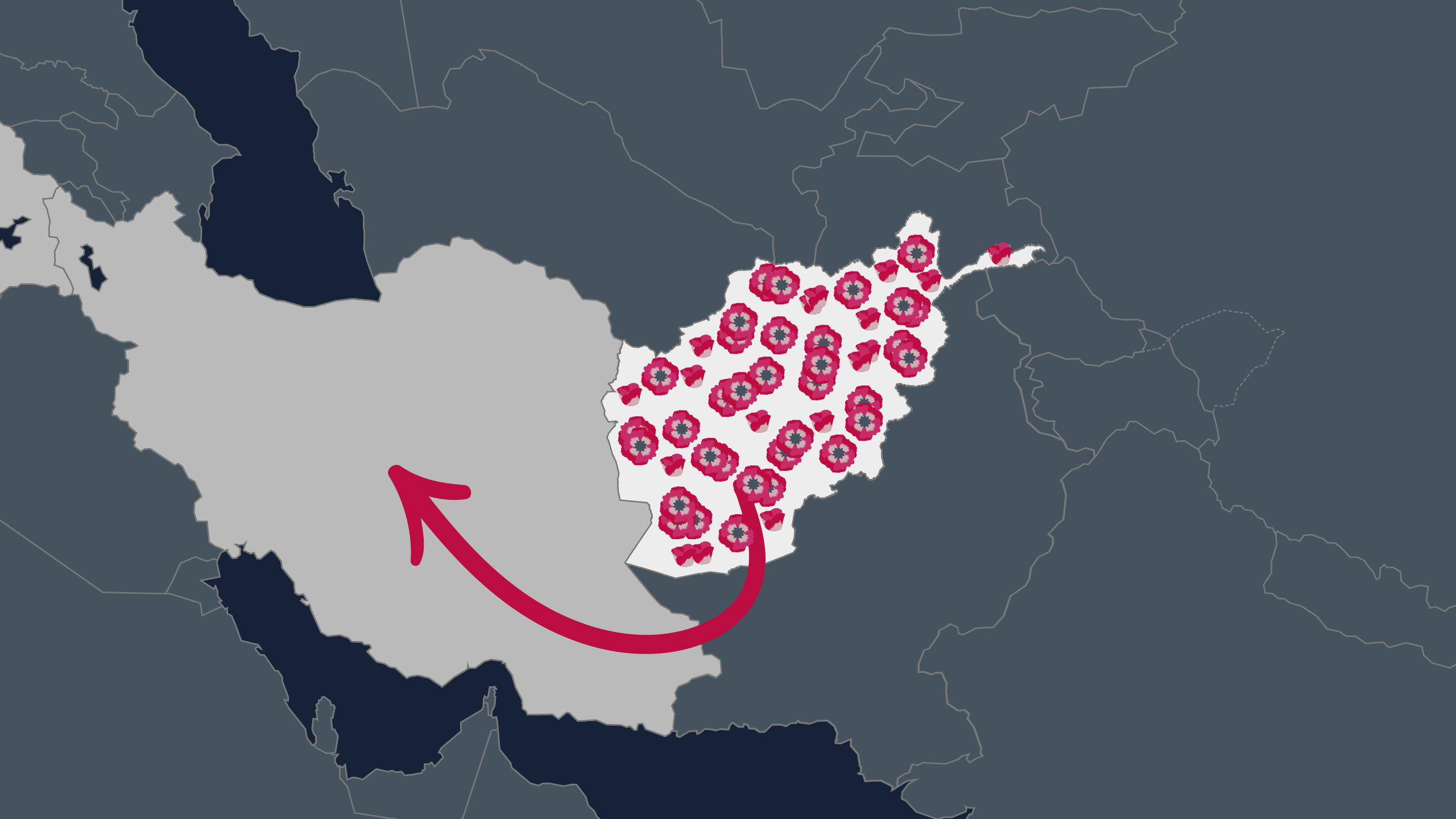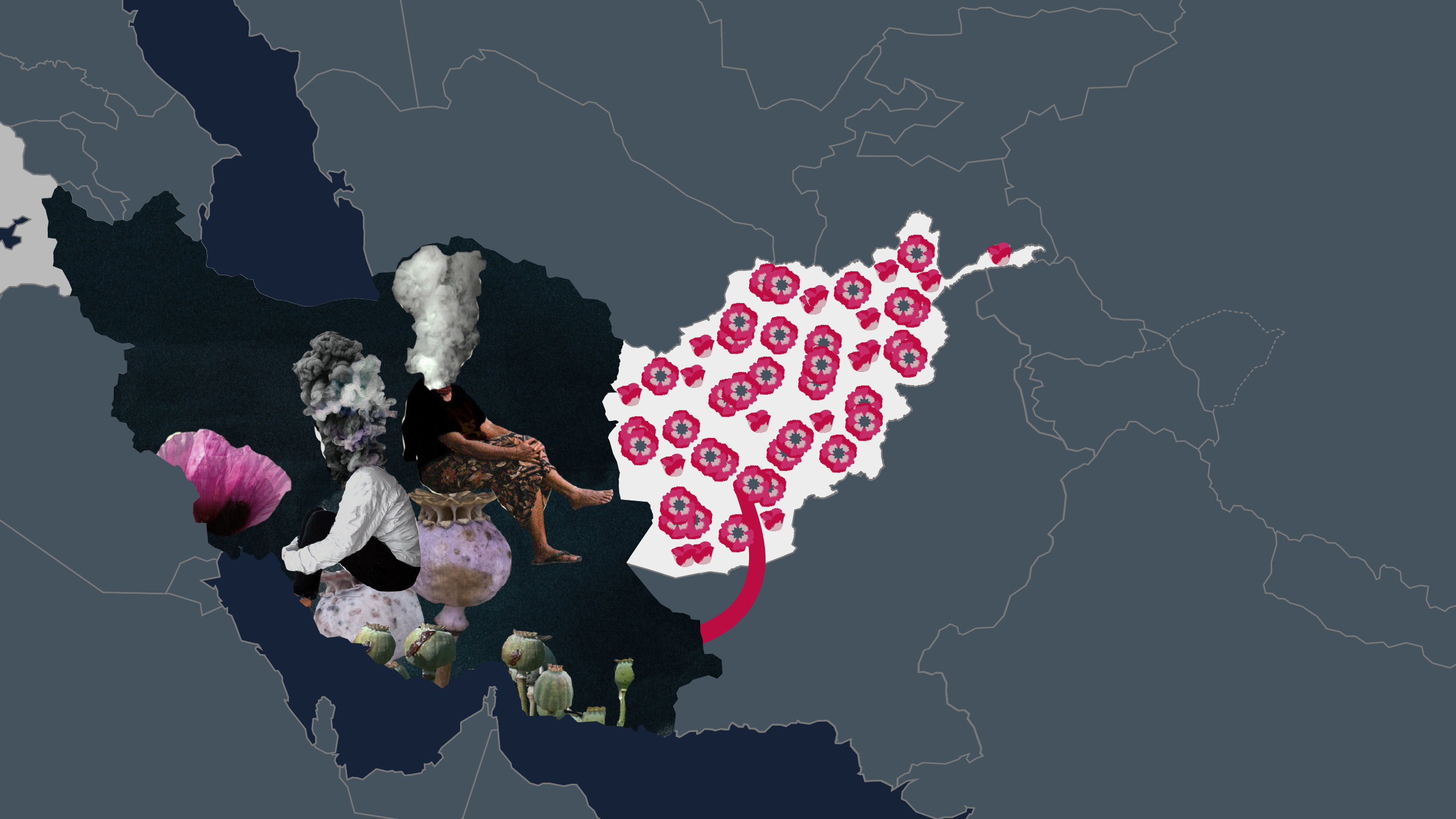 يمرالأفيون الأفغاني، في طريقه عبر ممر البلقان، في إيران من خلال الحدود الطويلة وغير الآمنة الفاصلة بين البلدين. وخلق الأفيون مشكلة إدمان كبيرة في إيران، التي يستهلك فيها نحو مليوني إيراني هذه المادة بشكل مستمر. وتعد غولي، البالغة من العمر 33 عاما، والتي تعمل في مجال الإحصاء في مدينة مشهد، واحدة من هؤلاء.