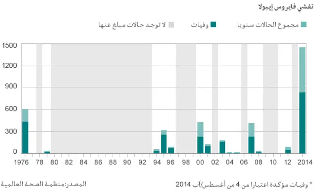 وورد في بيان صادر عن منظمة الصحة العالمية الأربعاء أن 932 شخصا قد فارقوا الحياة بسبب المرض في غرب إفريقيا، وكانت معظم الحالات التي أعلن عنها مؤخرا في ليبيريا، حيث فتك المرض بما مجموعه 282 شخصا.