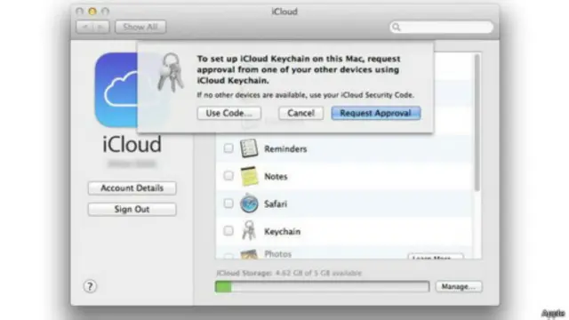 ويتضمن الإجراء خطوة إضافية بعد إدخال المستخدم لاسمه وكلمة السر من جهاز لم يستخدمه من قبل. كما يتطلب إدخال شفرة من أربعة أعداد، ترسل إلى رقم هاتف المستخدم أو تطبيق "العثور على هاتف آيفون" الخاص بآبل.