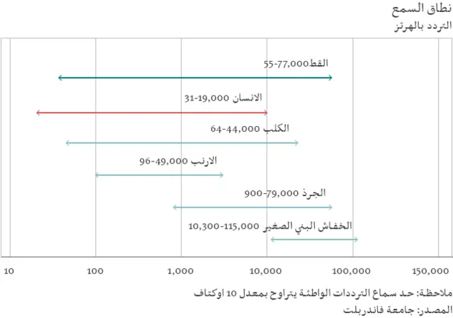 ويمكن للقطط التعرف على 11 درجة صوت، أي أكثر من البشر بدرجتين، مما يساعدهم على تتبع الكائنات الصغيرة التي تتواصل بالهمهمات فوق الصوتية.