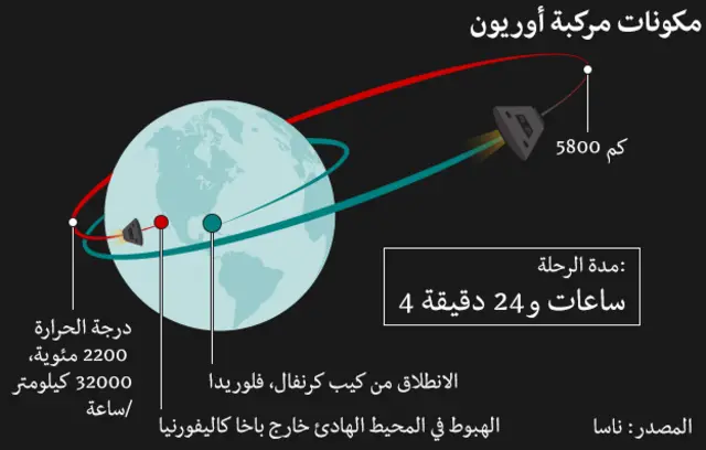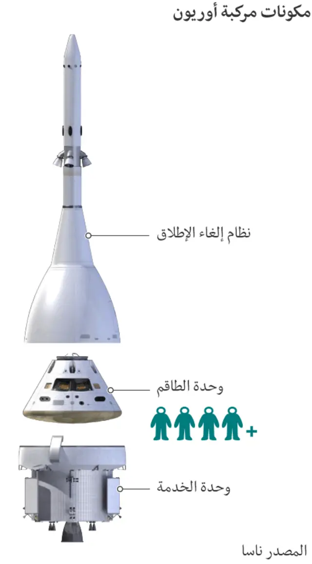 والمركبة "أوريون" تحاكي مركبات "أبولو" التي نقلت البشر إلى القمر في ستينيات وسبعينيات القرن الماضي. لكنها تفوقها حجما، ومزودة بأنظمة تشغيل أحدث.