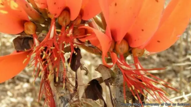توجد الشجرة المرجانية، (المعروفة علميا باسم إريثرينا شليبيني)، بزهورها الحمراء الزاهية وجذعها الشوكي، فقط في الغابات النائية في الجنوب الشرقي لدولة تنزانيا.