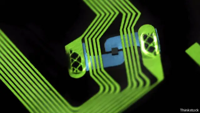 وكانت هذه الشريحة هي عبارة عن جهاز بالغ الصغر يمكنه تخزين كمية قليلة من المعلومات، والاتصال بأجهزة إلكترونية قريبة منه.