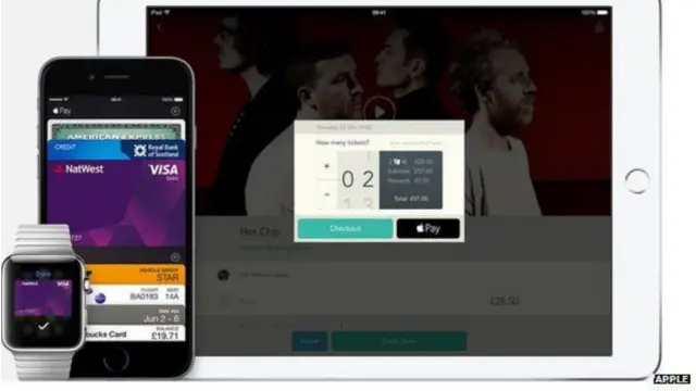 كما يمكن إجراء عمليات الشراء أيضا عن طريق أجهزة آبل اللوحية "آي باد" إلى جانب الساعة والهاتف.