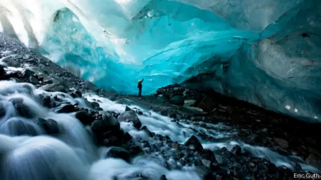 يكشف التوغل في أعماق منطقة مندنهال الجليدية في ولاية ألاسكا الأمريكية النقاب عن عالم خفي حافل بالدرجات السريالية للون الأزرق، والأمواج المتجمدة، والكهوف التي تشبه ذاك المكان الذي كان تتخذه شخصية "سوبرمان" الخيالية مخبأً لها في القصص والأعمال السينمائية.