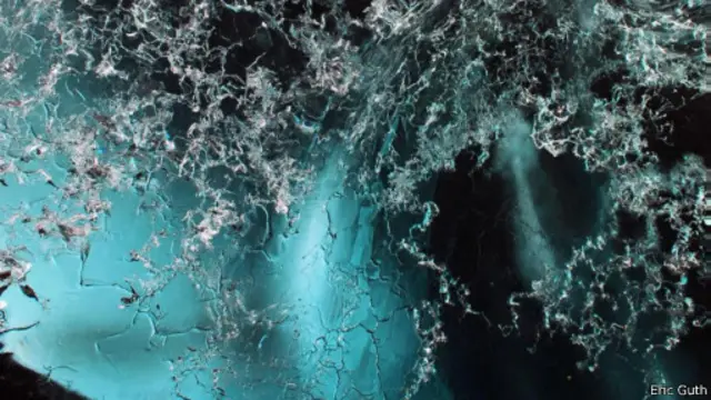 ويحجب سطح النهر رؤية تلك التكوينات، ولكن بمقدور المرء رؤيتها إذا ما غاص في أعماق الكتل المؤلفة للنهر الجليدي، كما حدث عندما التقطت إحدى الصور المرفقة بهذا الموضوع.