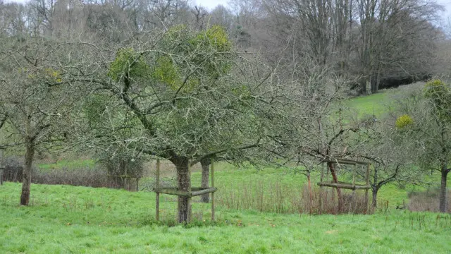 وهذا ليس كل ما نتوقعه عند نضوج أشجار البساتين تلك. فهناك أيضا نبات "الدبق"، هو نبات طفيلي قديم في كل من "سومرسيت"، و "هيريفوردشير"، ويعتبر نباتاً رئيسياً تعيش عليه أنواع نادرة من المخلوقات، مثل حشرة الدبق وعث الدبق، وكلاهما نادران بشكل لا يصدق.