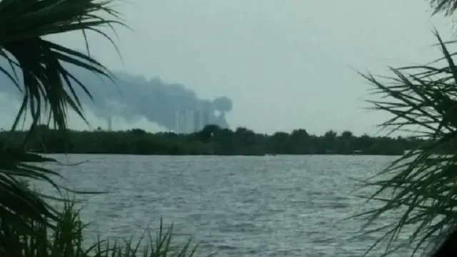 وتوضح الصور من موقع الانفجار عامود دخان كثيف يرتفع فوق مجمع كيب كانافيرال الفضائي.