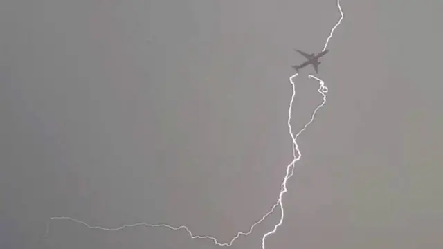 لكن فجأة ظهرت طائرة في الأفق كانت تغادر المطار، لتضربها إحدى صواعق البرق في الحال.