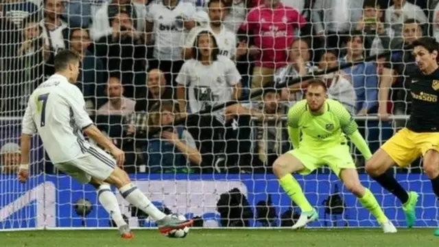 أحرز كريستيانو رونالدو ثلاثية جديدة له في دوري أبطال أوروبا في مباراة فريقه ريال مدريد في ذهاب نصف النهائي أمام غريمه اتليتكو مدريد ليقترب الفريق الملكي من النهائي الثالث له خلال أربع سنوات.