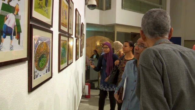 التعليق على الصورة، وارتبطت رسوم الكاريكاتير المختارة بالمعرض هذا العام بالرياضة، إذ كانت الموضوع الرئيسي للمشاركات.