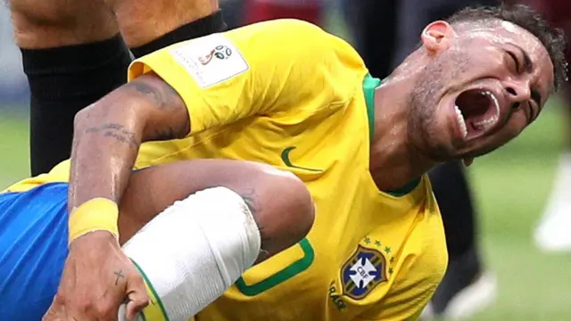 وقبل نهاية مباراة المكسيك بعشرين دقيقة، داس المدافع المكسيكي ميغيل لايون على كاحل نيمار على نحو طفيف. لكننا رأينا كيف بدأ اللاعب البرازيلي في الصراخ والعويل وهو يلوح بذراعيه تعبيرا عن الألم الشديد.