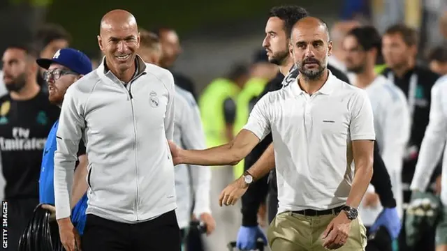ويعد لقاء مانشستر سيتي مع الريال أول مواجهة تنافسية بين زين الدين زيدان وبيب غوارديولا الفائزان باللقب لعدة مرات.