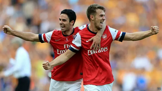 وفي الوقت الاضافي احرز الويلزي ارون رامزي هدف الفوز لارسنال في الدقيقة مئة وتسعة لتنتهي المباراة بفوز الارسنال.