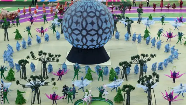 وسبق المباراة حفل اتسم بالبساطة، شارك فيه حوالي 660 راقصا وراقصة.