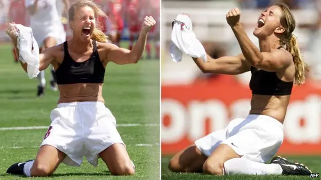 عام 1999، أصبحت لاعبة كرة القدم الأمريكية، براندي شاستين، من أكثر الناس شهرة، فبعد إحرازها ضربة جزاء حققت فوز بلادها في نهائي كأس العالم للسيدات. وفي رد فعل مثير للجدل، خلعت قميصها احتفالا بالهدف.
