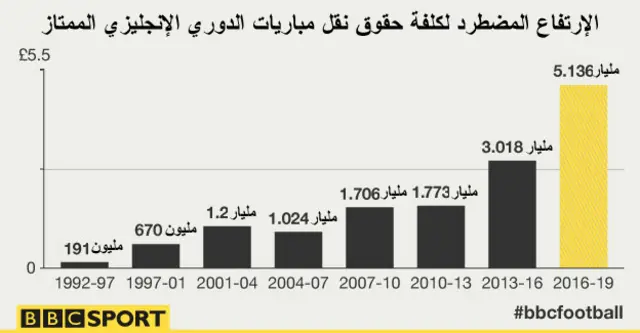 دفعت شركتا "سكاي" و"بي تي" مبلغا يتجاوز 5,136 مليار جنيه إسترليني للإستحواذ على حقوق البث التلفزيوني لمباريات الدوري الإنجليزي الممتاز لكرة القدم لثلاثة مواسم إعتبارا من 2016.