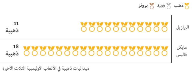 حصل فيلبس على 18 ميدالية ذهبية في آخر ثلاث دورات أولمبية – أي أكثر بسبع ميداليات عن المجموع الإجمالي لما حصل عليه جميع المنافسين في دورة 2016 التي تستضيفها البرازيل في ذلك الوقت.