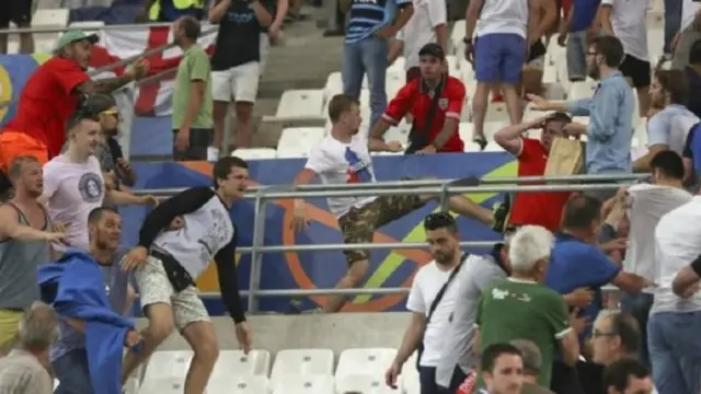 وقالت خدمات الطوارئ في مرسيليا إن أكثر من 30 شخصا أصيبوا خلال الاشتباكات بين المشجعين الروس والانجليز من بينهم واحد سقط فاقدا الوعي نتيجة تلقيه ضربة بينما تعرض احد المشجعين الانجليز لنوبة قلبية.