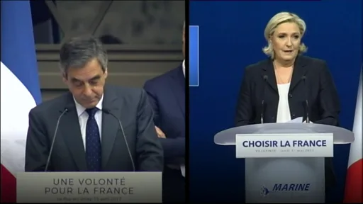 وبثت القناة خطابي لوبان وفيون جنباً إلى جنب، وطلبت من المشاهدين إبداء رأيهم بالموضوع.