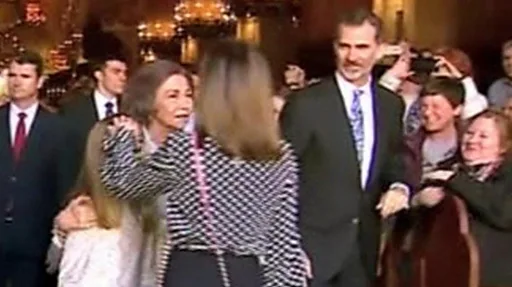 وصور هذا الفيديو خلال قداس عيد الفصح في جزيرة مايوركا وتبدو الملكة ليتيسيا وهي تحجب اخذ صورة للملكة صوفيا مع ابنتيها ثم تدفع يدها من على كتف ابنتها انفانتا صوفيا.
