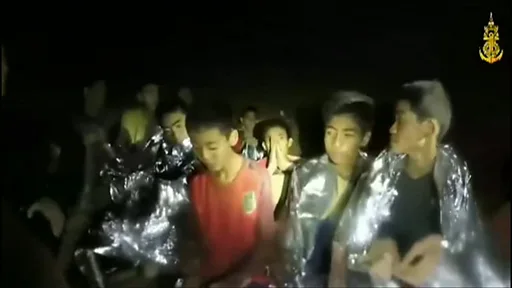 ويُظهر الفيديو، الذي نُشر على صفحة البحرية التايلاندية على فيسبوك، الأطفال ملفوفين بأغطية من لفائف الألومنيوم لإبقائهم دافئين.