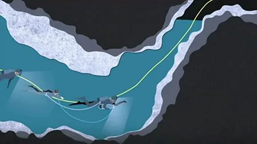 وأصعب نقطة في المسيرة كلها منعطف ضيق يحتم على الغواصين نزع جهاز التنفس للمرور عبره.