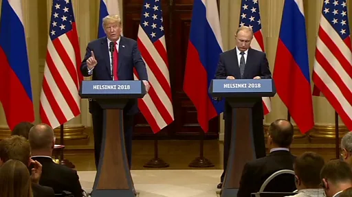 قال الرئيس الأمريكي ردا على سؤال وجه إنه خلال المؤتمر الصحفي المشترك مع بوتين عن مزاعم التدخل الروسي في الانتخابات الرئاسية الأمريكية إن " الرئيس بوتين يقول إن روسيا لم تقم بذلك، ولذا ليس لدي أي سبب لاتهامهم بذلك".