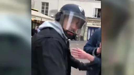 يُظهر الفيديو الأصلي رجلاً يرتدي خوذة الشرطة، ولكن ليس بالزي الرسمي، ينضم إلى شرطة مكافحة الشغب بعد اندلاع اشتباكات.