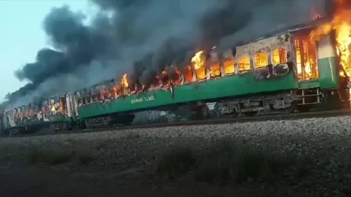 لقي أكثر من 70 شخصا حتفهم إثر اشتعال النيران في قطار كان متجها من مدينة كراتشي إلى روالبندي في باكستان.